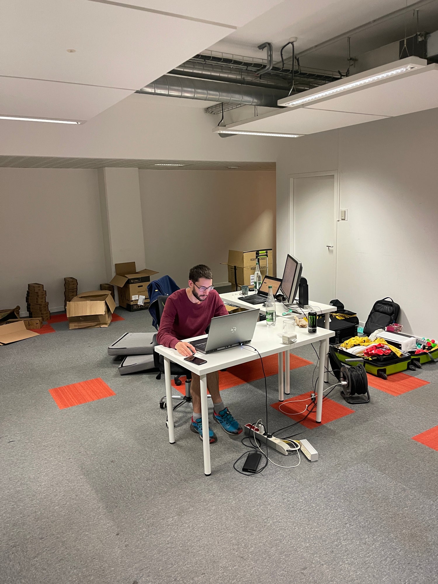 Picture: Nicolas working on TOSSIT right after the launch in a very rustic office in Paris. The 2 founders have been sleeping on the floor of that office for a few months at the beginning.