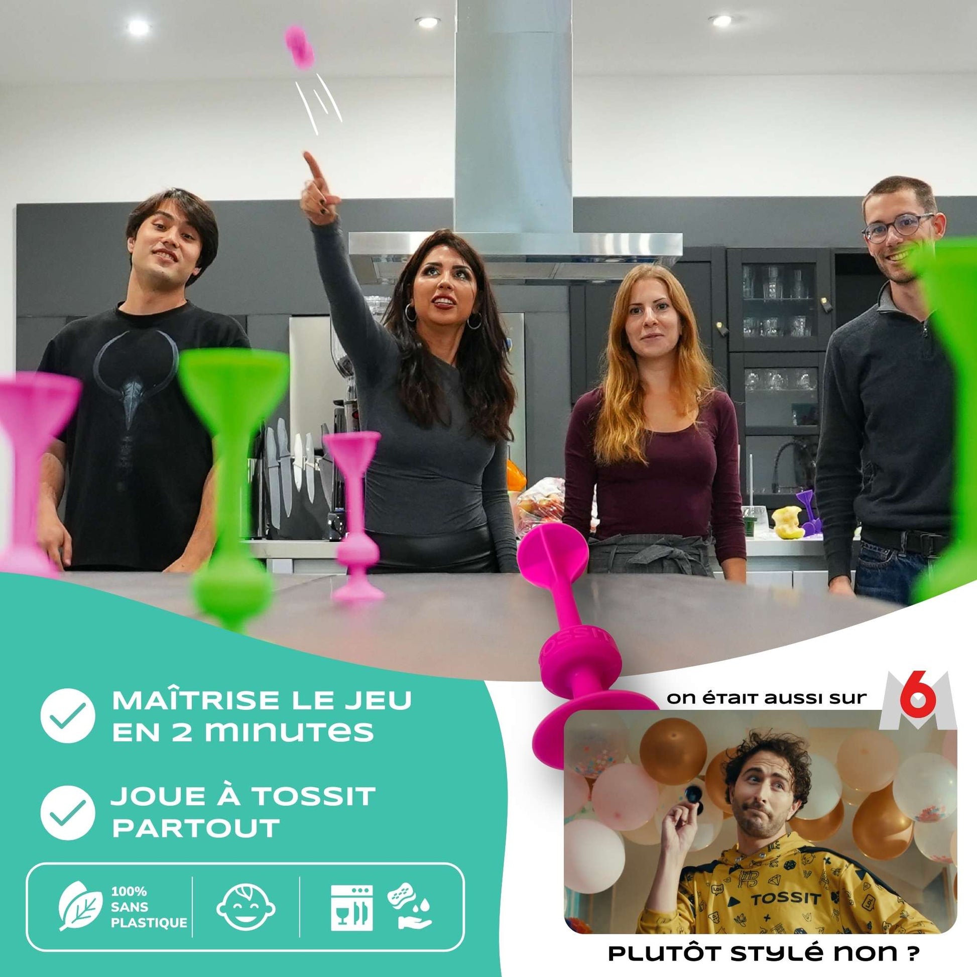 TOSSIT 、何歳からでも簡単に手に取って投げることができるため、多くの人に愛されている。キッチンのカウンターや窓、床など、滑らかな面があればどこでも友達や家族と一緒に投げることができる。